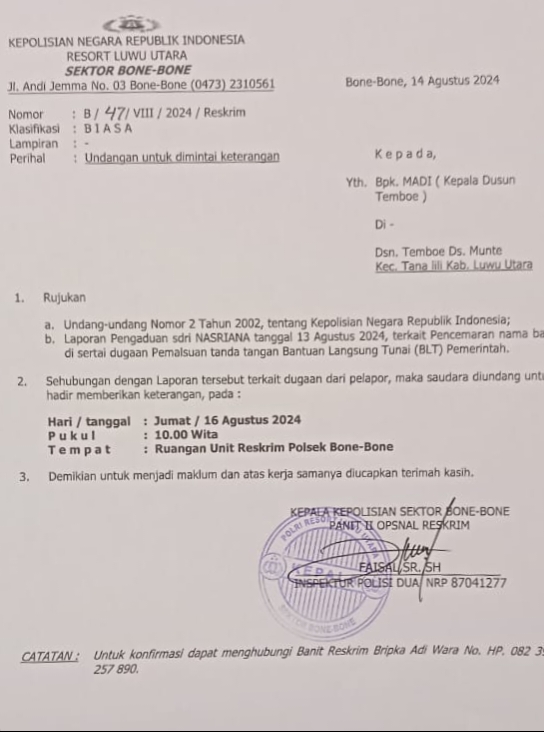 Dirinya merasa aneh kenapa bisa bantuan di orang tuanya dicairkan sementara saya tidak pernah menandatangani berkas apapun, saya menduga Kadus yang telah memalsukan tanda tangan saya makanya saya laporkan di polisi atas dugaan fitnah dan pemalsuan tanda tangan,” Lanjutnya.